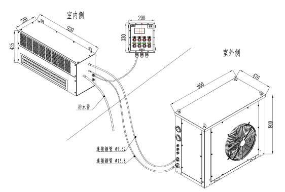 | 室內(nèi)機(jī)外形尺寸 | 長L(mm) | 920 |