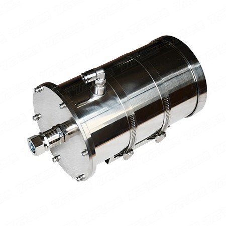 產(chǎn)品描述 ² YTS-A10水冷耐高溫?cái)z像儀是一款專為特殊環(huán)境設(shè)計(jì)的產(chǎn)品。該產(chǎn)品可以應(yīng)用在環(huán)境溫度較高的環(huán)境中。 ² 防護(hù)罩外層具備水腔,從后端進(jìn)水口輸入冷卻水,通過(guò)水腔從上端的出口排出,防止粉塵粘附,同時(shí)循環(huán)水可以帶走熱量,有效降低設(shè)備的溫度。 ² 視窗采用特殊的鋼化平板玻璃制作,在堅(jiān)固耐用的同時(shí),保證了畫質(zhì)的清晰。 ² 具備2個(gè)出線孔,可使用防爆撓性管或防爆電纜進(jìn)行防爆電氣連接。 ² 安裝方便,維護(hù)簡(jiǎn)單,可選用半固定云臺(tái)、固定支架、基座、立柱、塔架方式安裝。